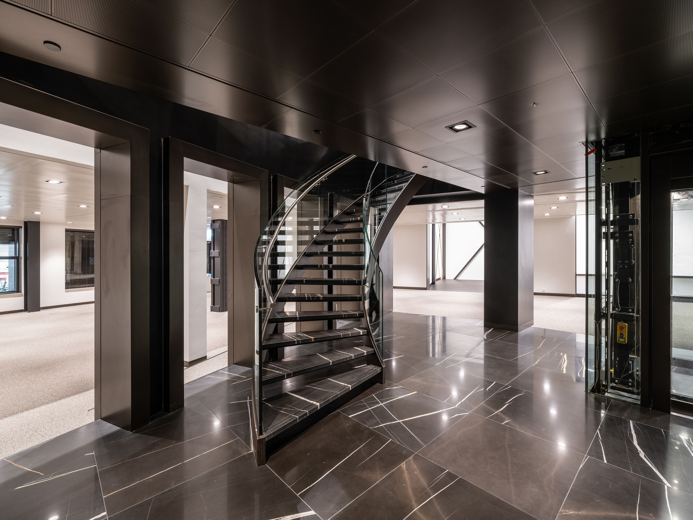 Turn-key opleveringsniveau inclusief vergaderruimtes, vloerbedekking, kopshout en marmeren vloerafwerking.